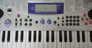 Rhythm or style Button: Using this button, you can change different types of rhythms built in the keyboard. Rhythm patterns are used corresponding the type of melody you play. You can just explore them and enjoy the patterns. Just press start button on the keyboard to activate the pattern.